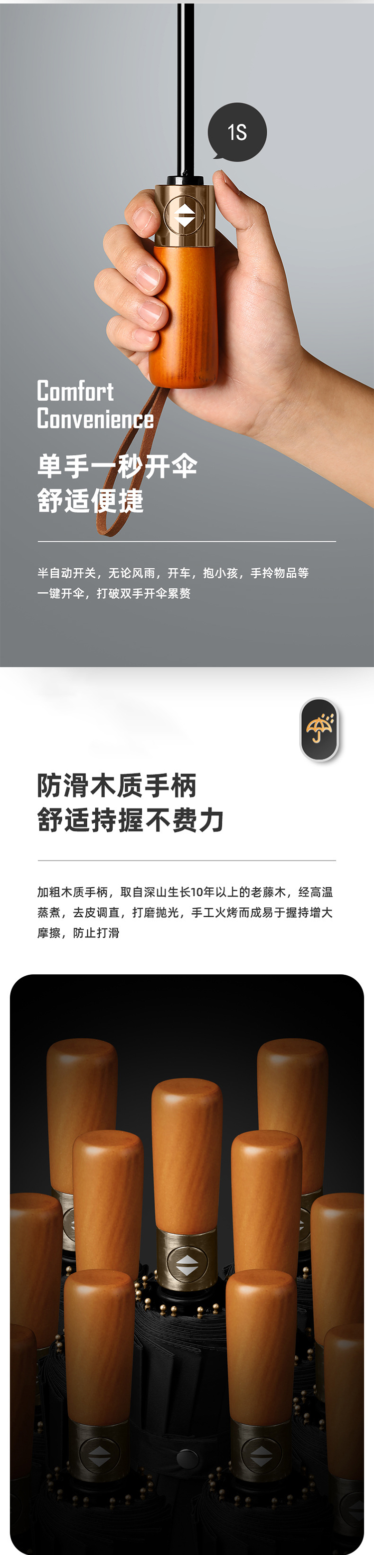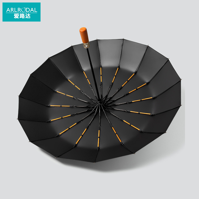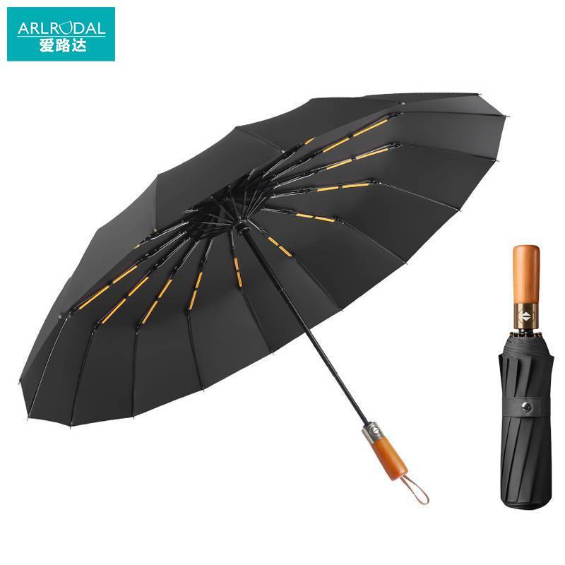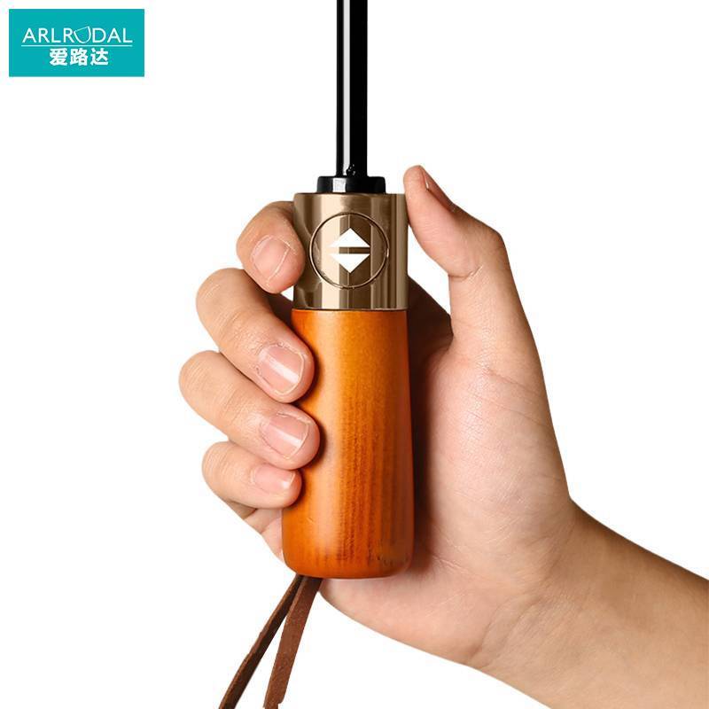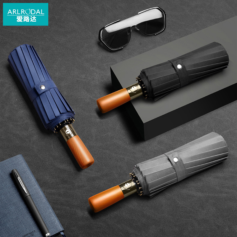爱路达 原木手柄双龙骨黑胶三折雨伞全自动晴雨伞 L-16骨/把