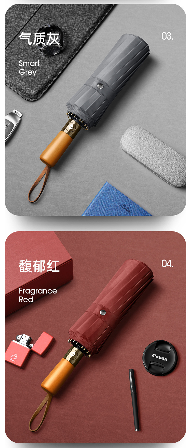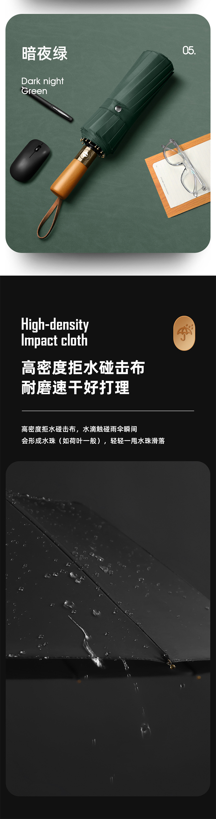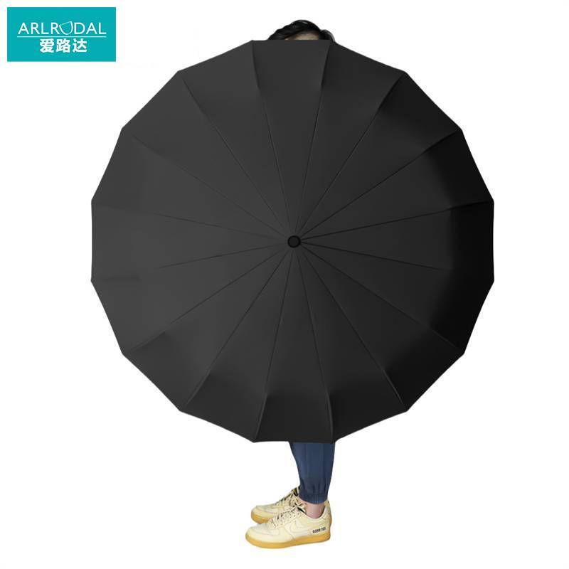 爱路达 原木手柄双龙骨黑胶三折雨伞全自动晴雨伞 L-16骨/把