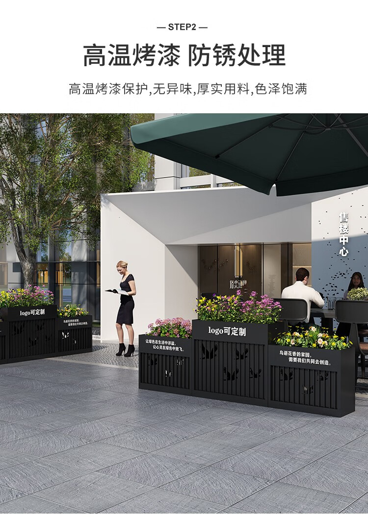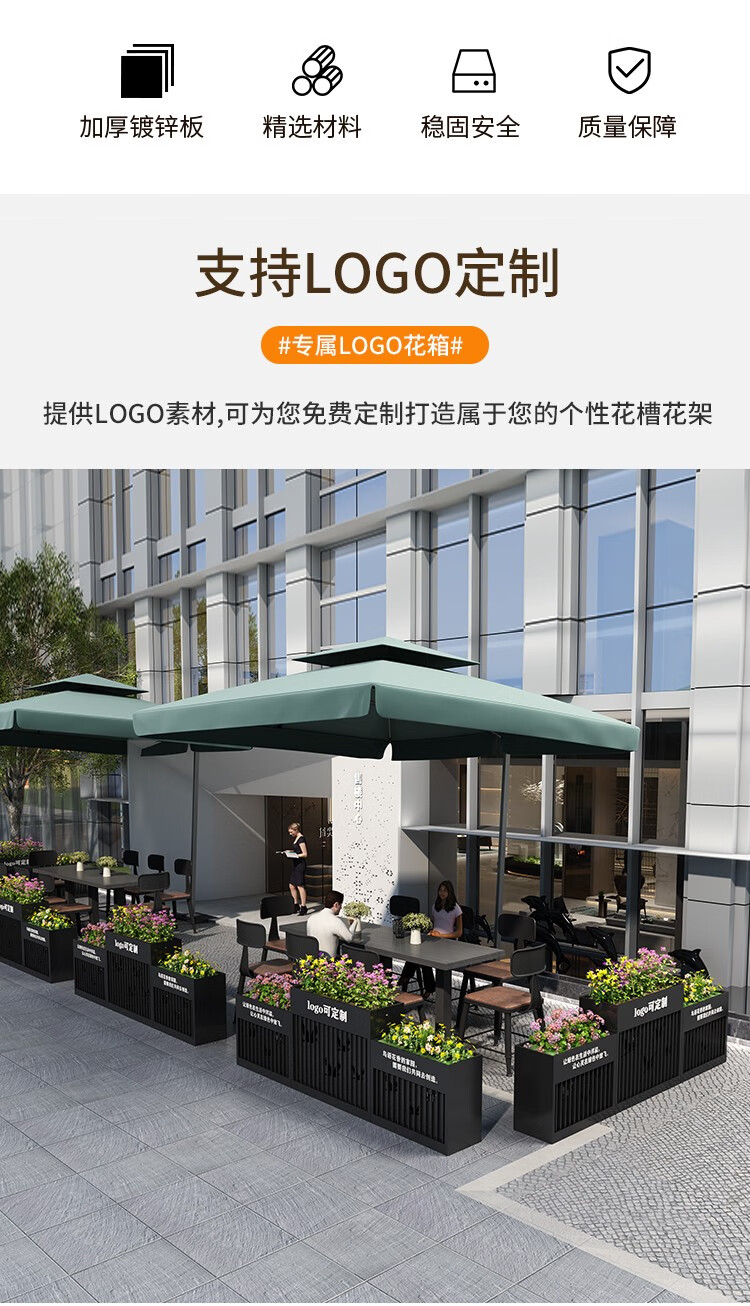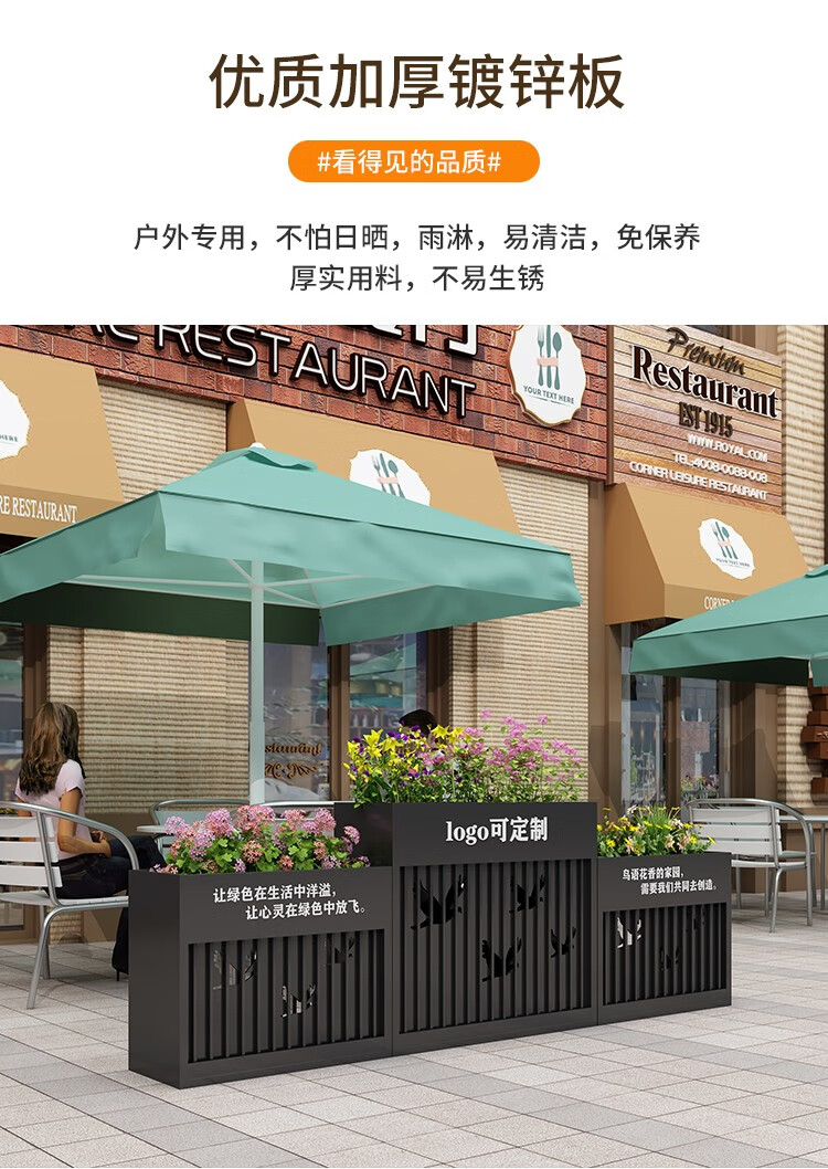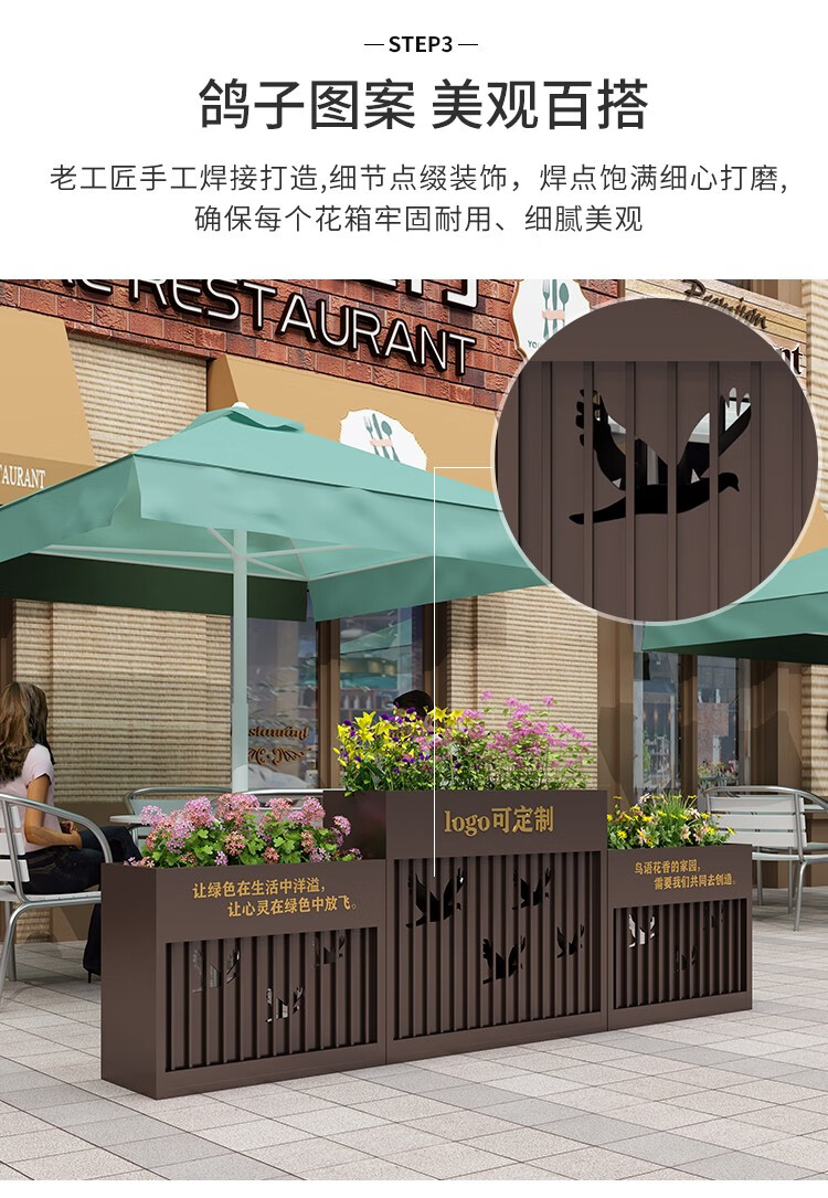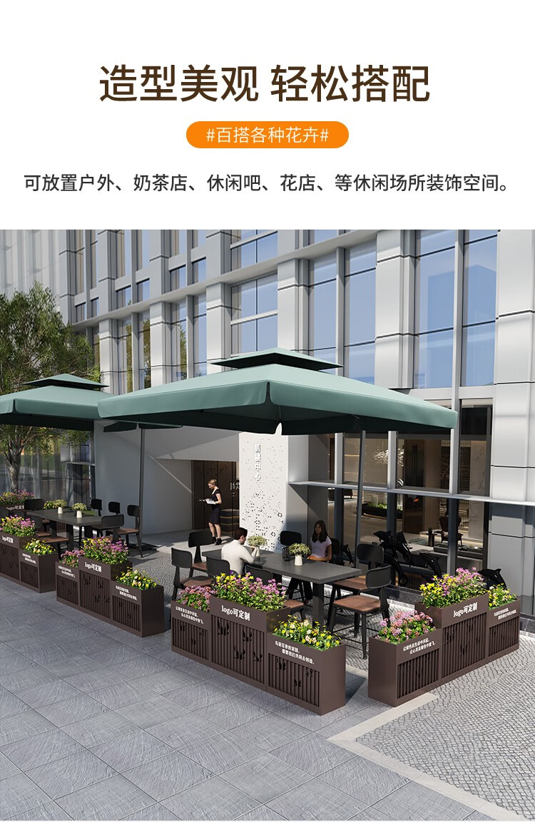 金菲罗格户外商业镀锌钢板花箱隔断组合 棕色花箱120x30x60cm