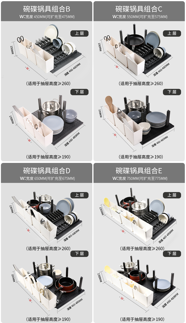 厨房抽屉收纳碗架碗柜碗碟放碗分隔架碗盘餐盘锅具置物晾碗架 三维工匠收纳层架