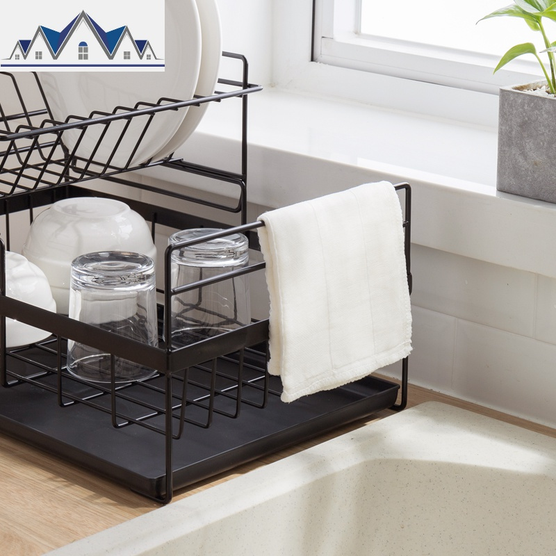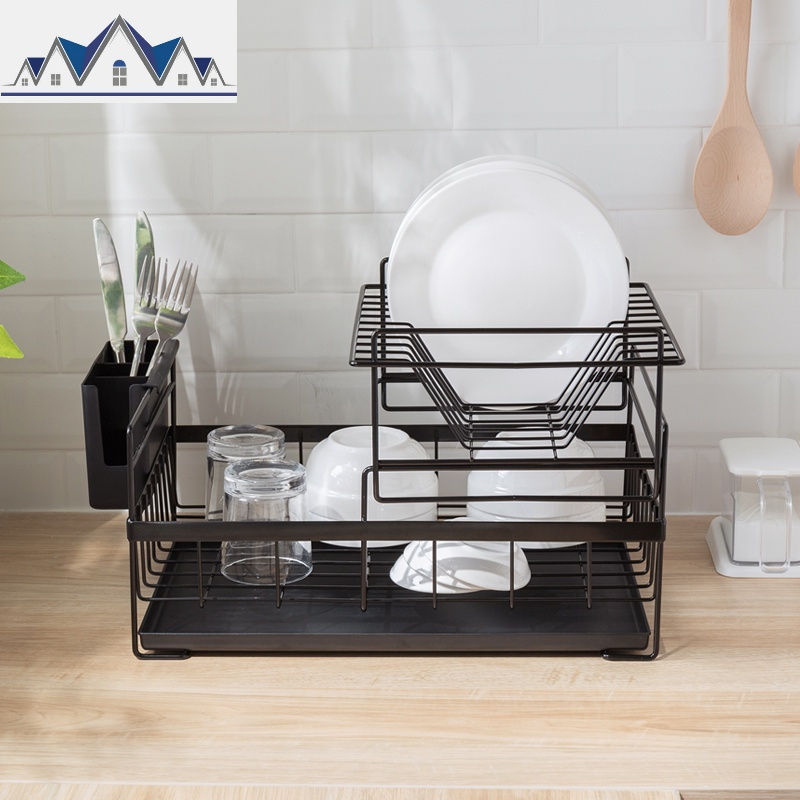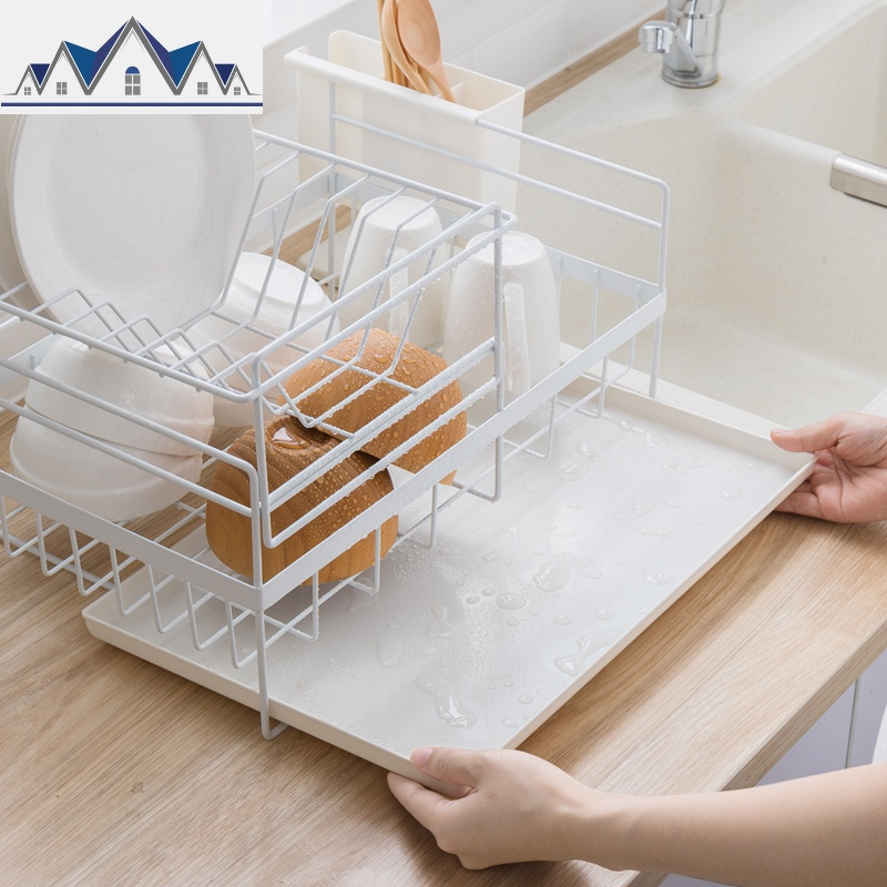 日式多功能餐具收纳厨房台面双层碗筷勺碟盘沥水架水置物储物架 三维工匠收纳层架