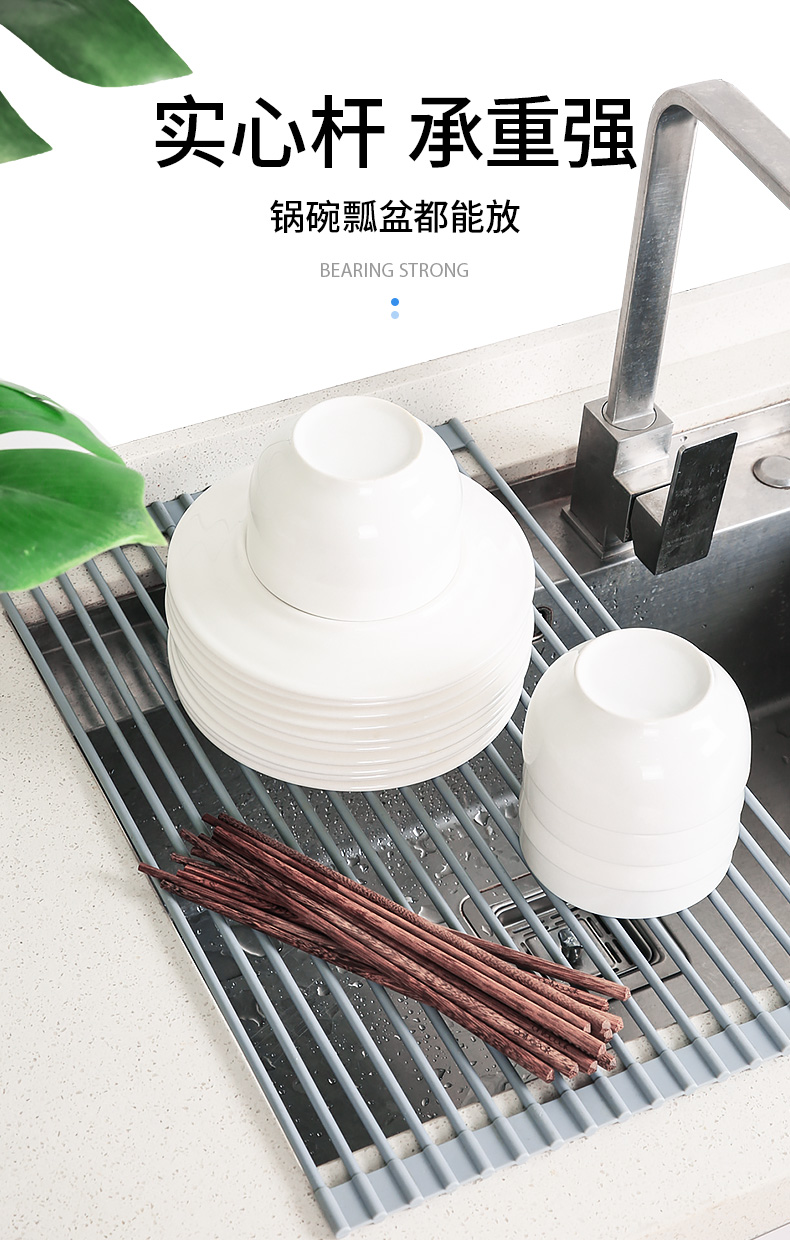 可折叠沥水架厨房水上方沥干架洗碗池篮放碗碟架家用置物碗筷架 三维工匠收纳层架