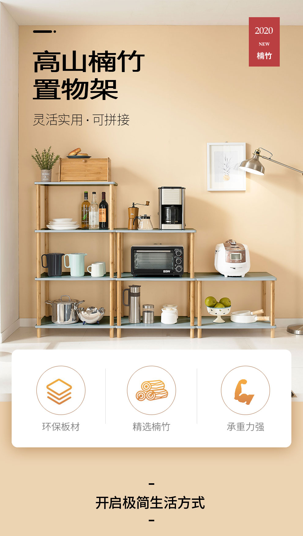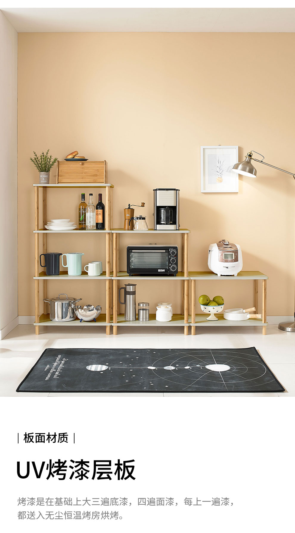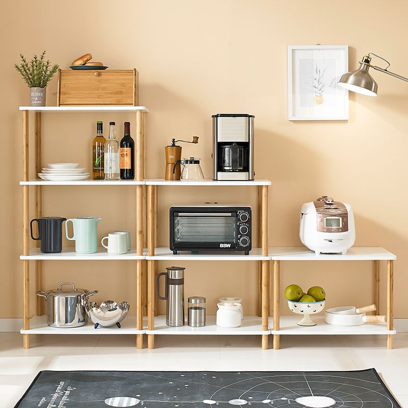 实木微波炉移动北欧卧室置物落地客厅隔板厨房多层收纳架收纳层架 三维工匠