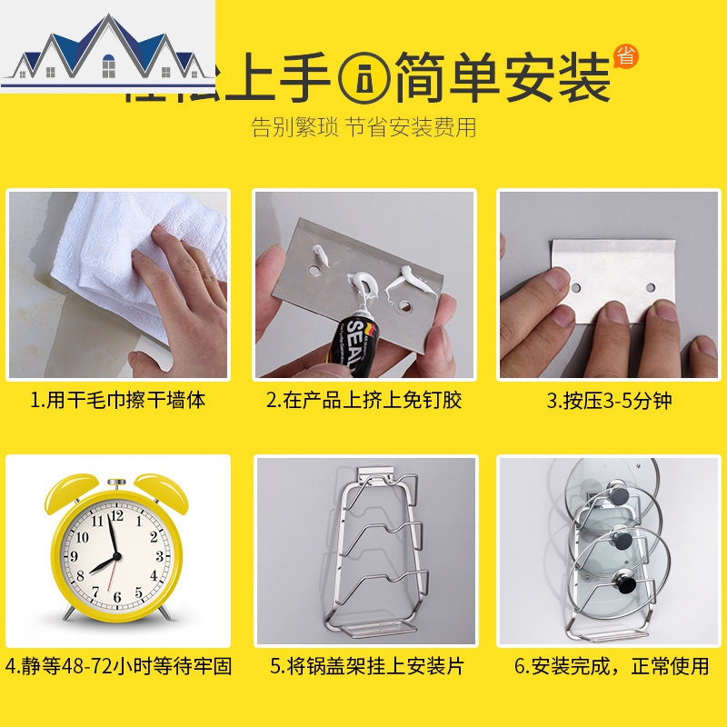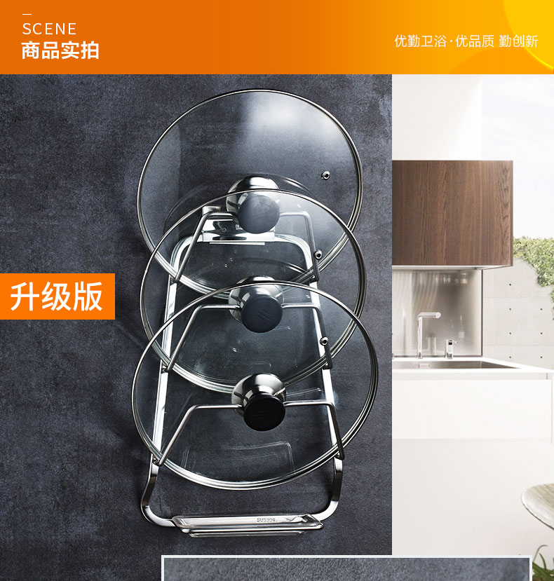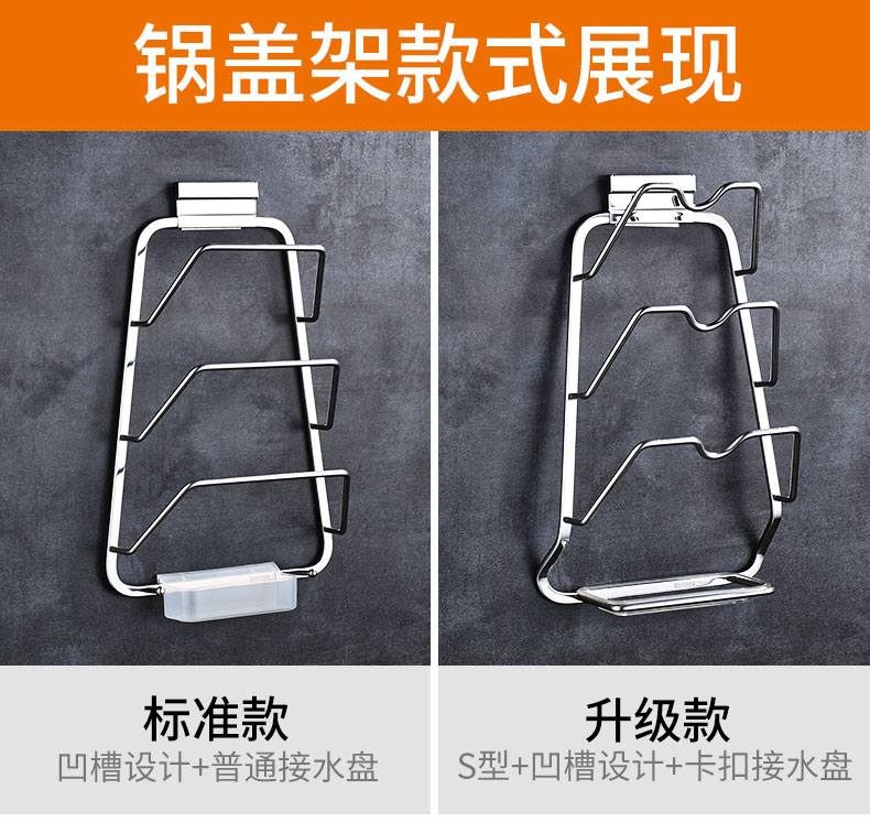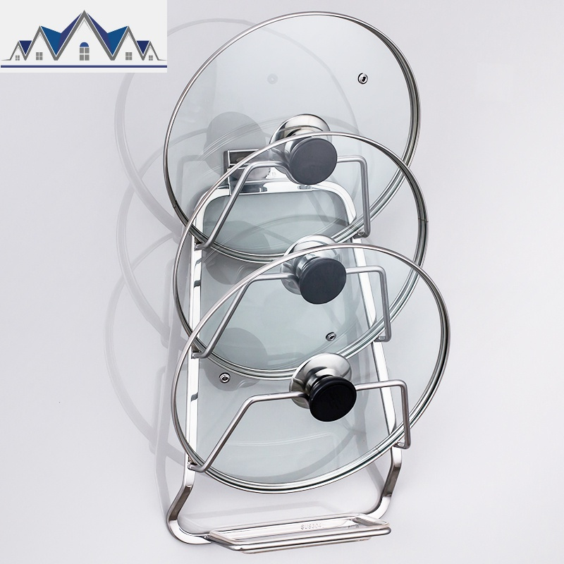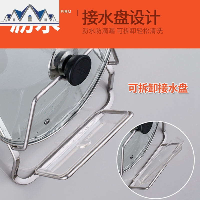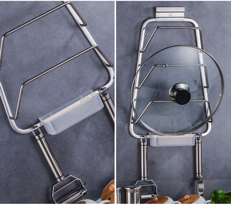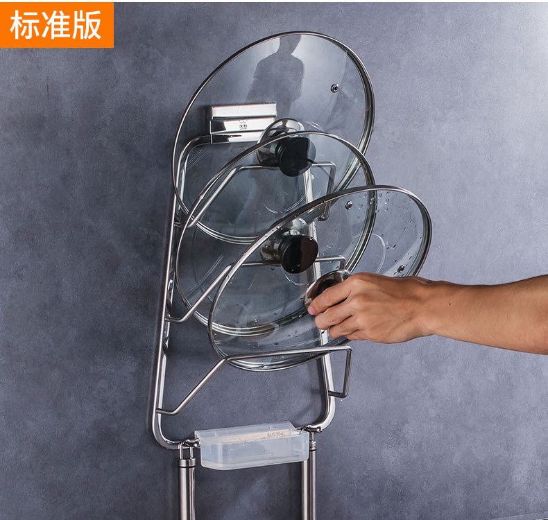 厨房锅盖收纳挂壁挂式放锅架的置物304不锈钢免打孔粘板架子家用 三维工匠收纳层架