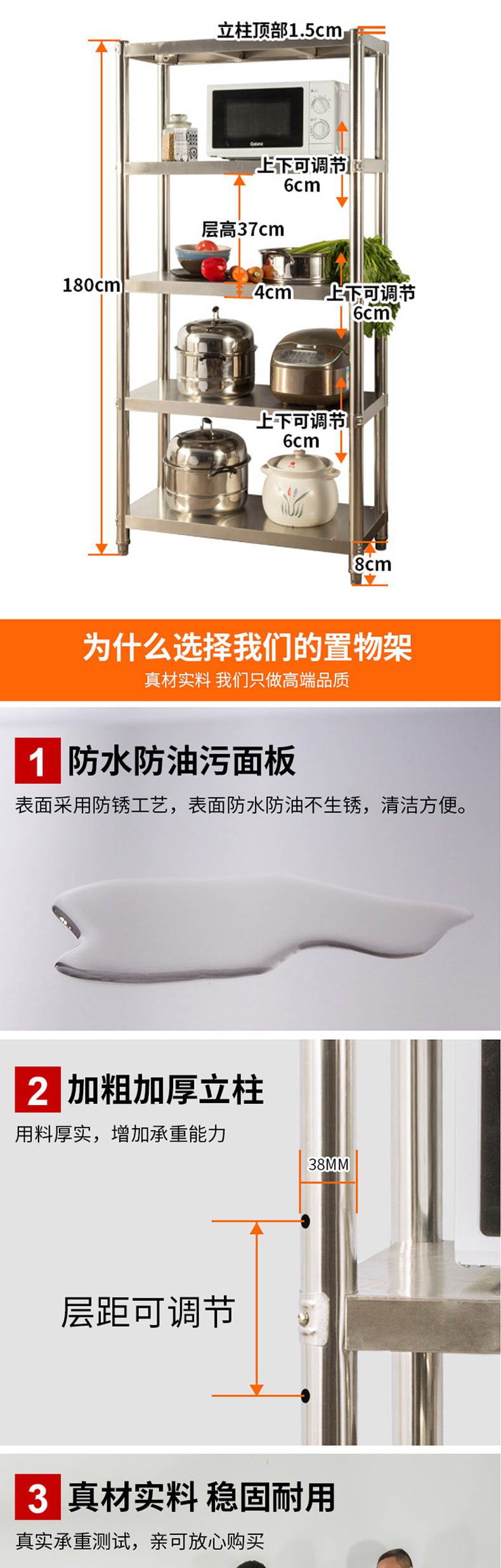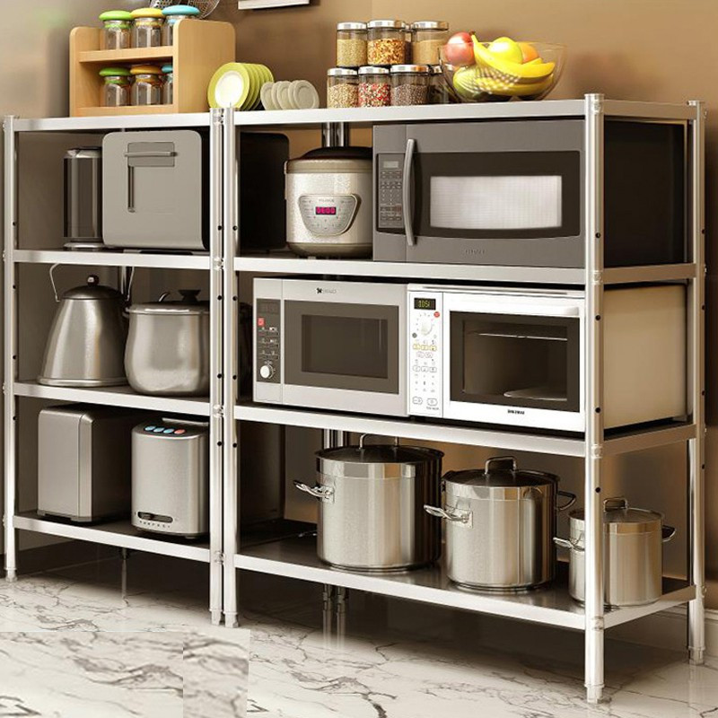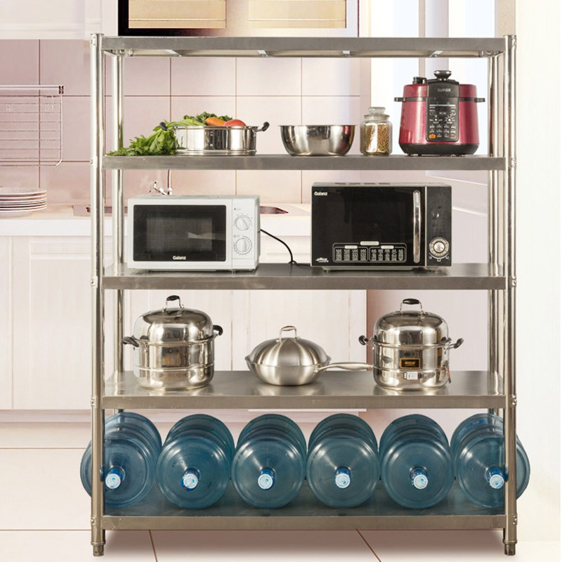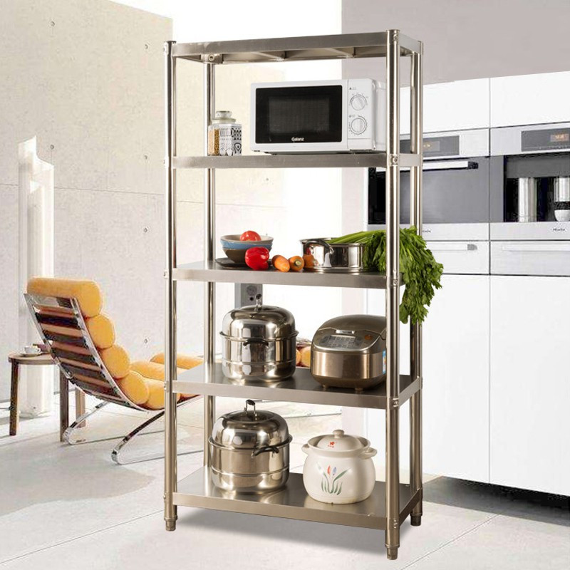 不锈钢厨房置物架多层微波炉置物收纳储物锅架落地式五层烤箱货架收纳层架 三维工匠