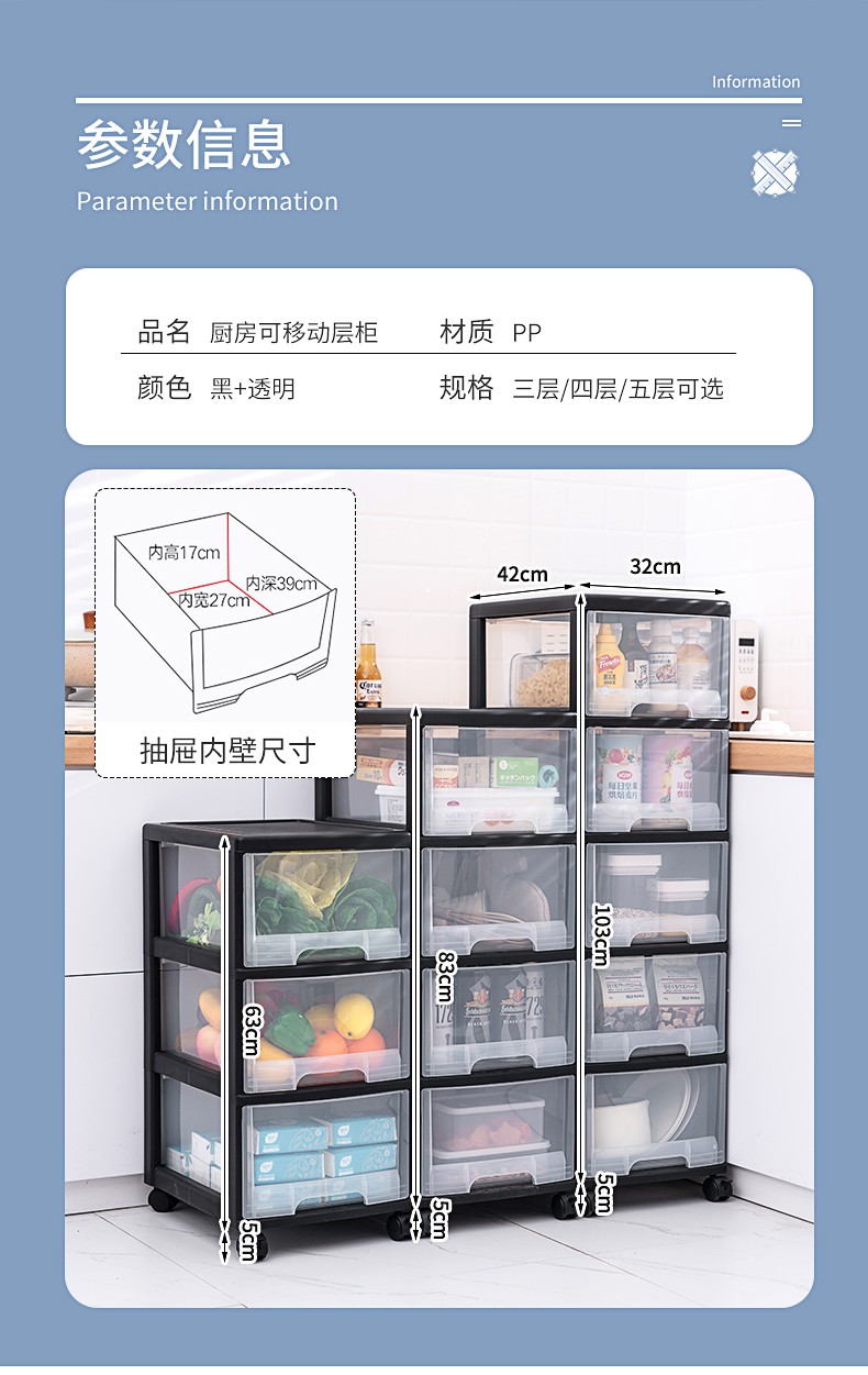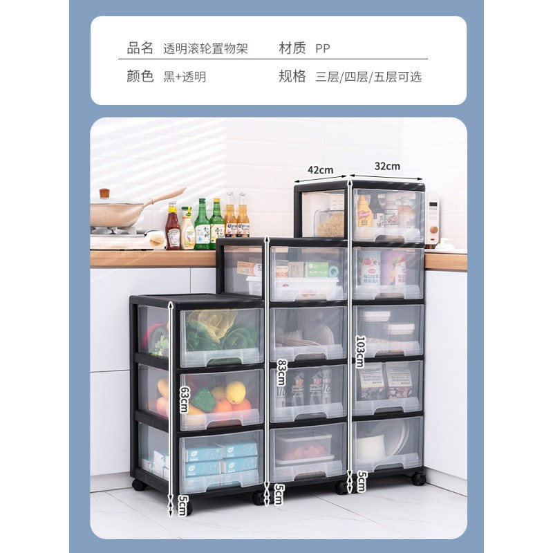 /厨房置物架可移动卧室带轮储物橱柜落地家用多层整理柜收纳收纳层架 三维工匠