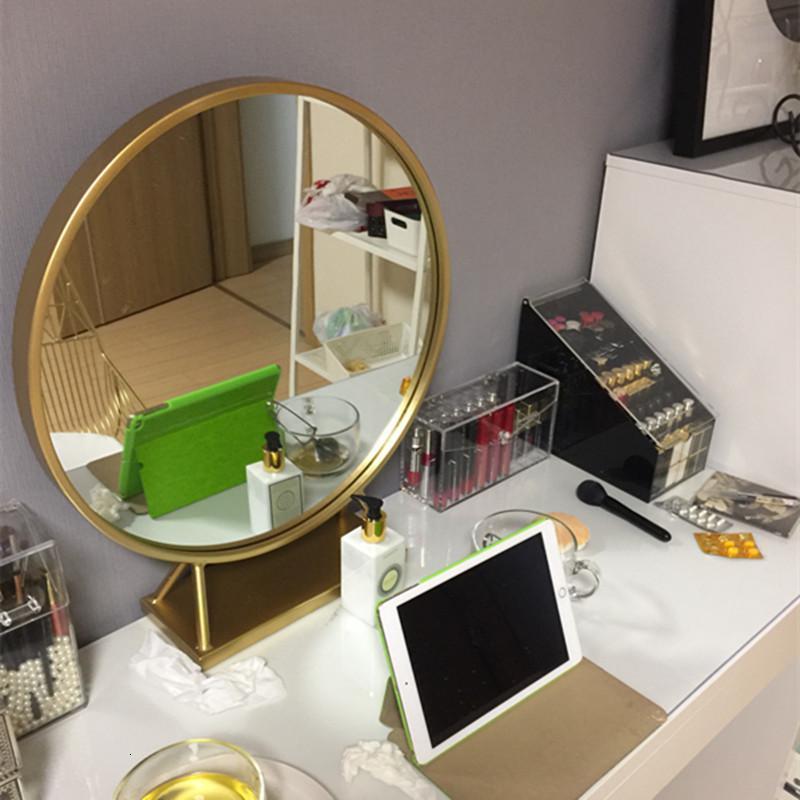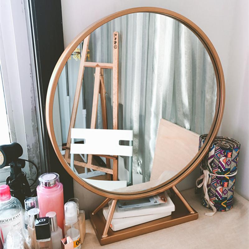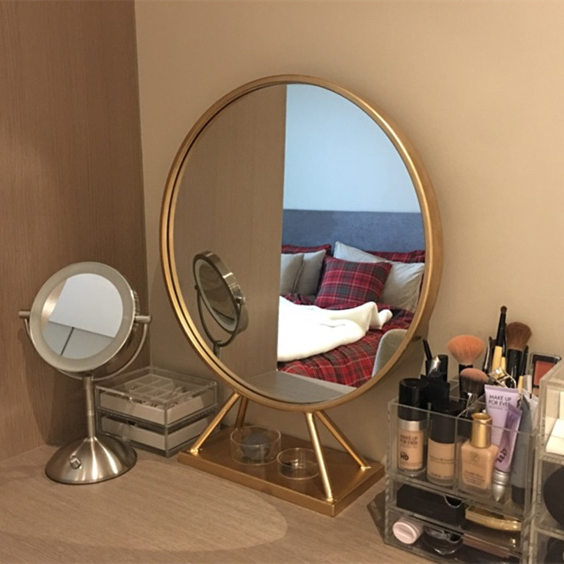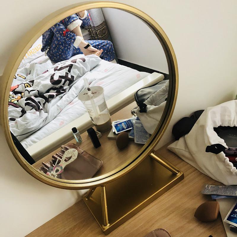 森美人欧式铁艺圆形镜美发店镜子单面镜卧室化妆镜创意镜加底座圆镜