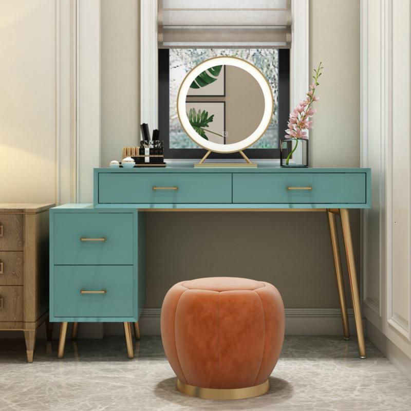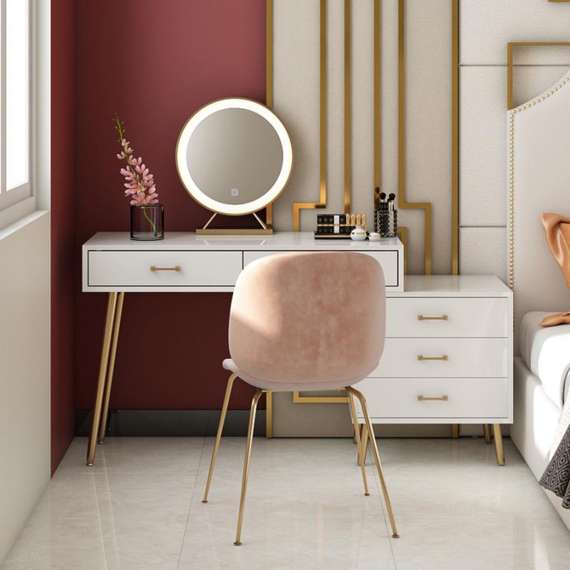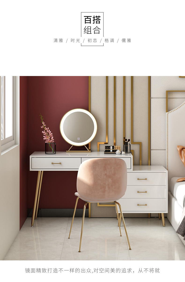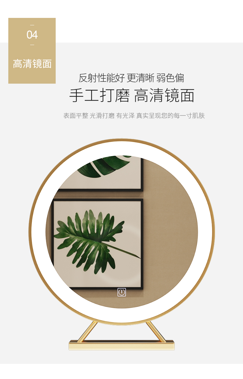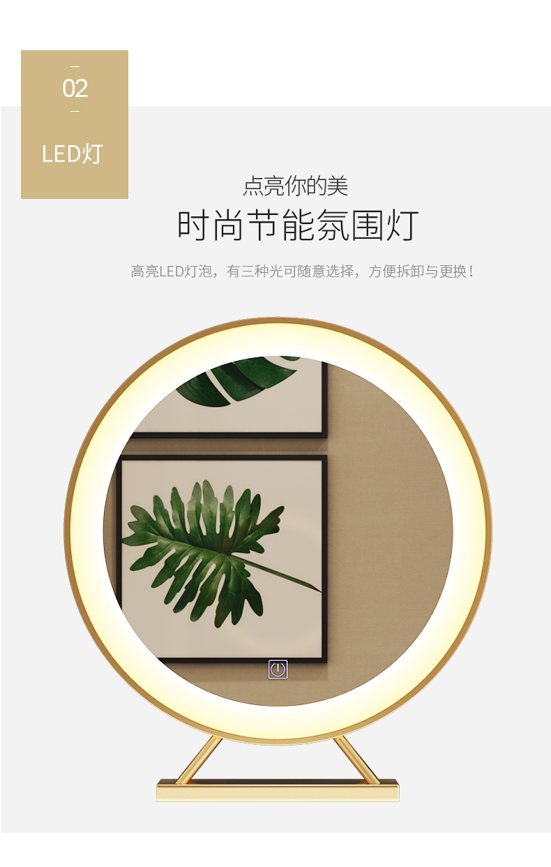 森美人北欧化妆镜金色圆形装饰镜台式座镜公主镜D灯镜子梳妆镜