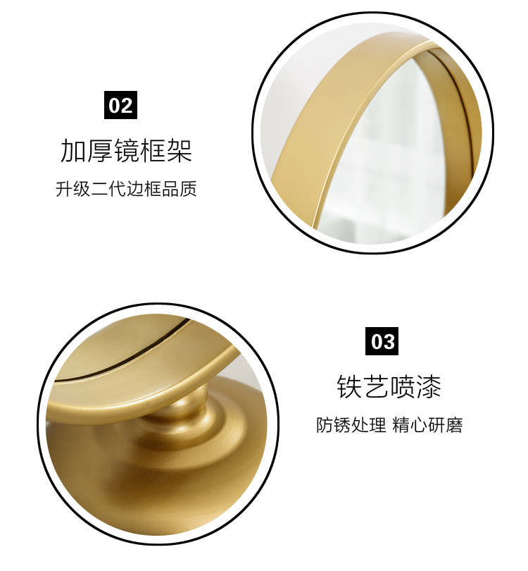森美人北欧梳妆镜欧式台式桌面圆形简约现代INS台面公主书桌化妆镜