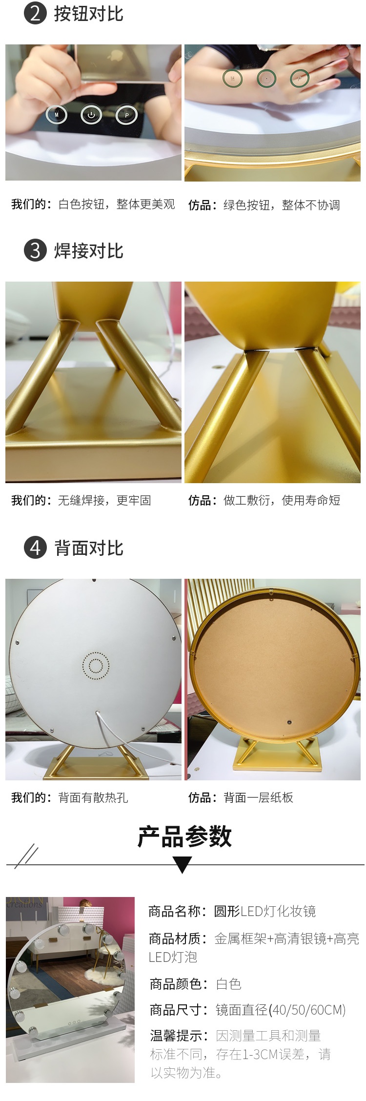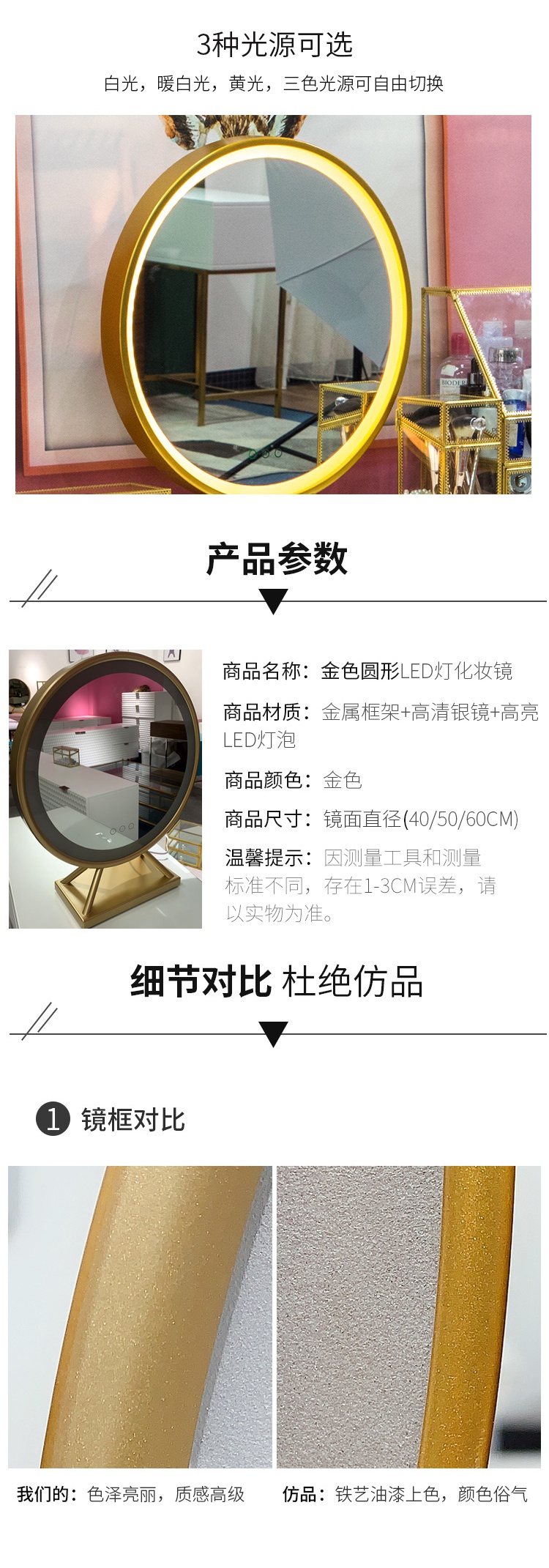 森美人台式化妆镜带灯d灯梳妆镜欧式化妆补光灯镜结婚公主镜子