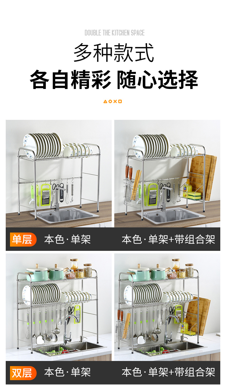 厨房置物架不锈钢水沥水架台式碗碟架刀架家用大全收纳厨具用品 三维工匠