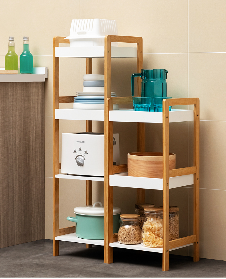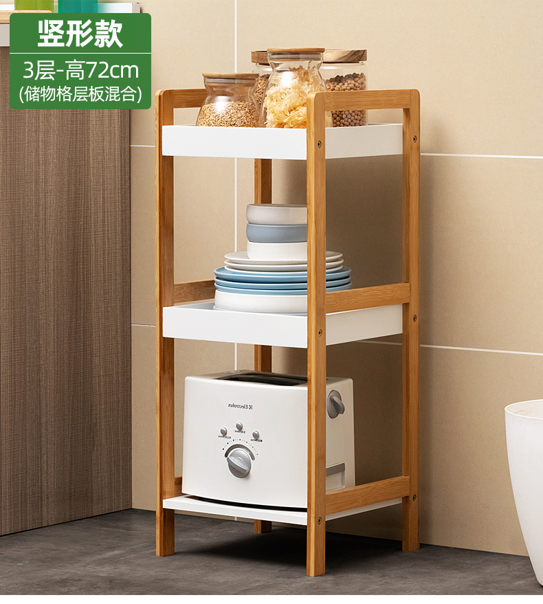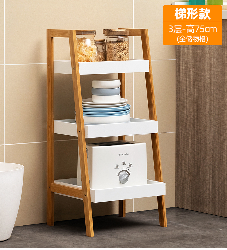 厨房置物架落地调味料架收纳实木用品刀架多层油盐酱醋储物 三维工匠