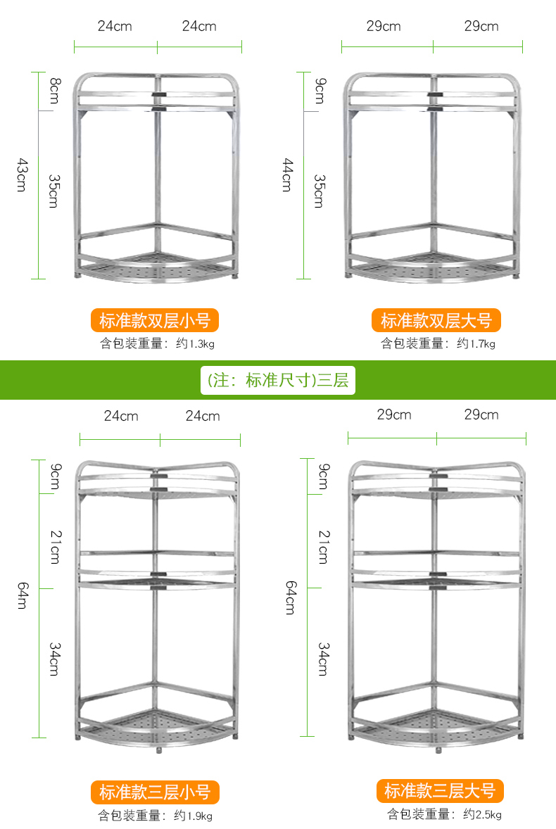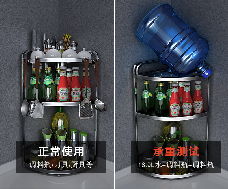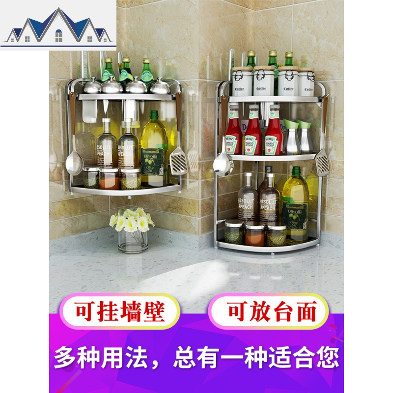 不锈钢厨房转角置物架壁挂调味调料架子三角形厨具用品收纳省空间 三维工匠