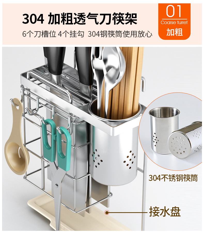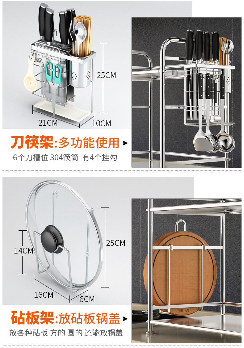 304不锈钢厨房置物架多功能收纳刀架用品调味调料架子盒家用大全收纳层架 三维工匠
