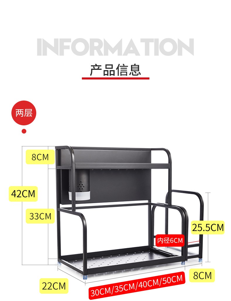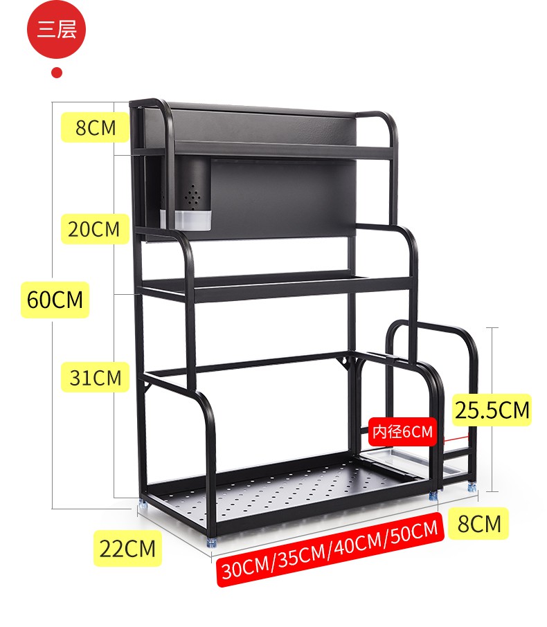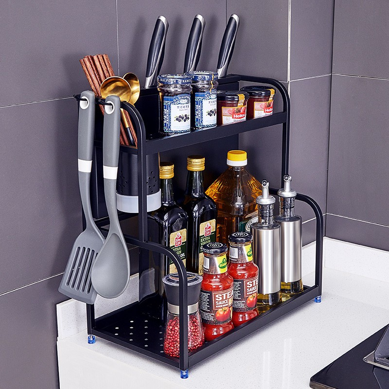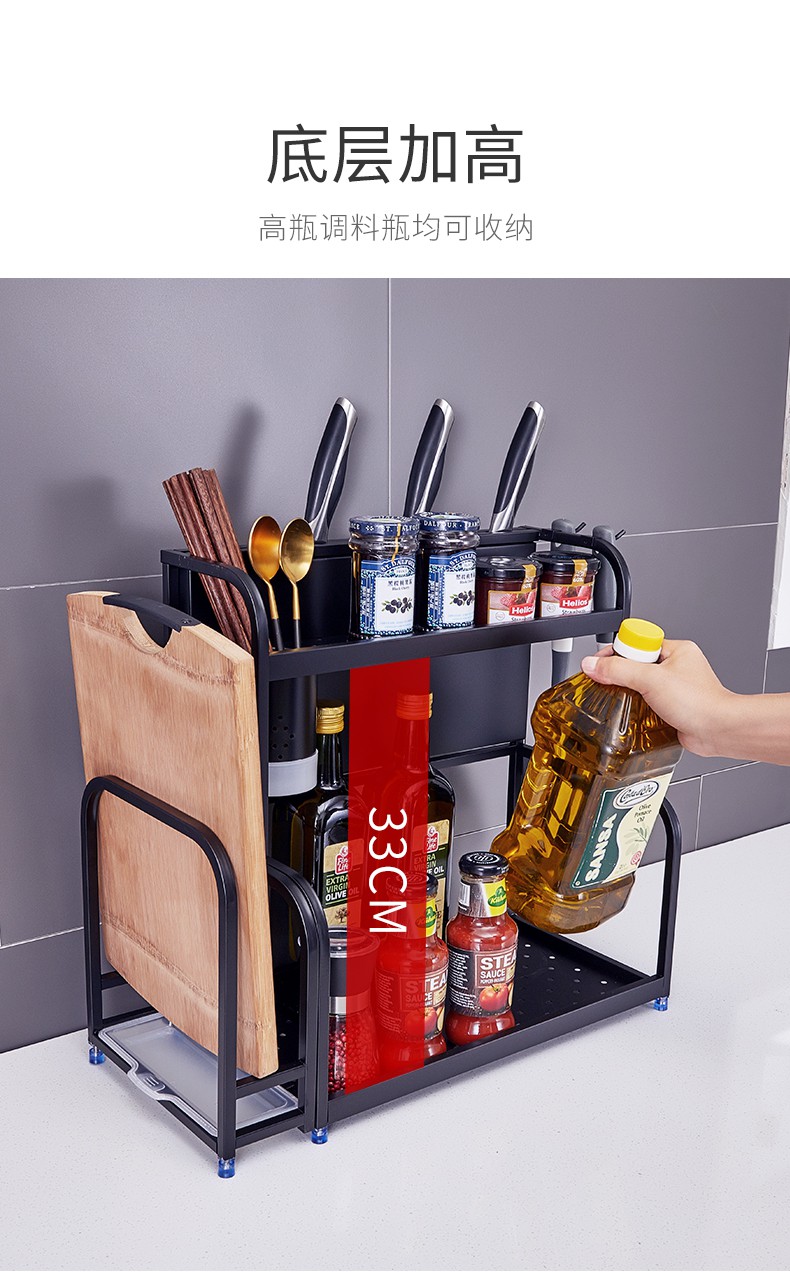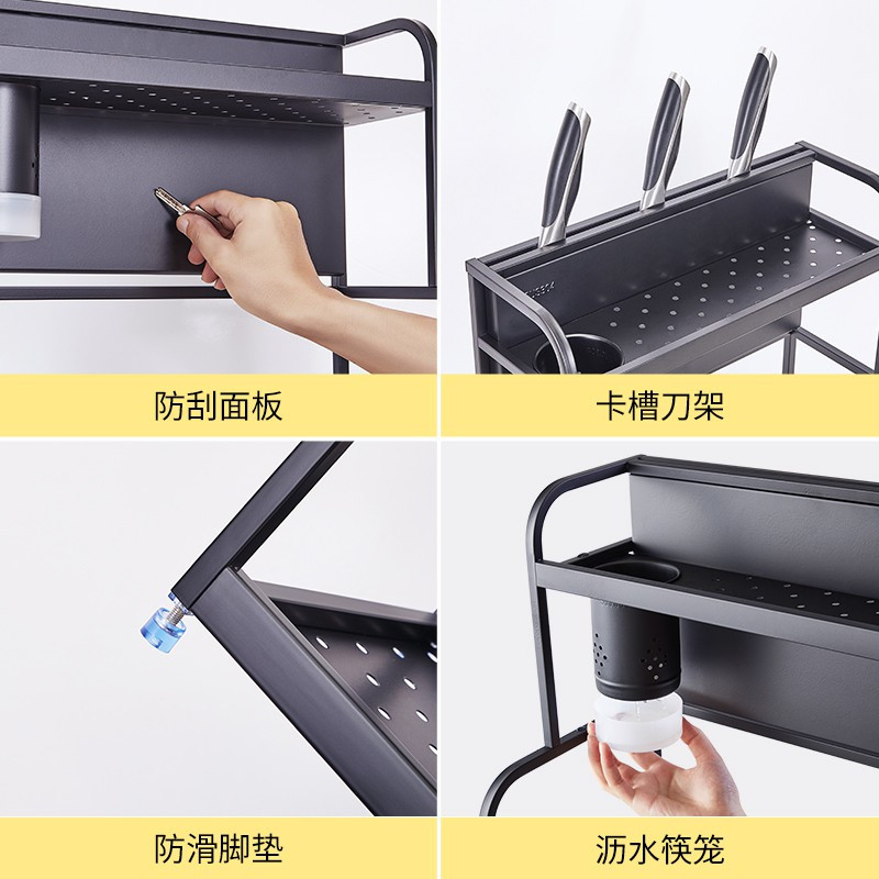 304不锈钢黑色厨房置物架用品收纳家用台面调味调料架子盒瓶刀架 三维工匠