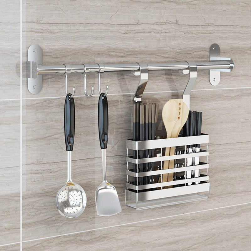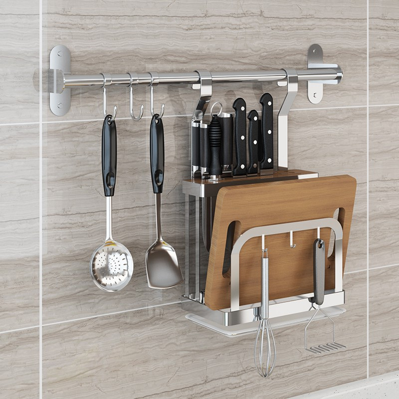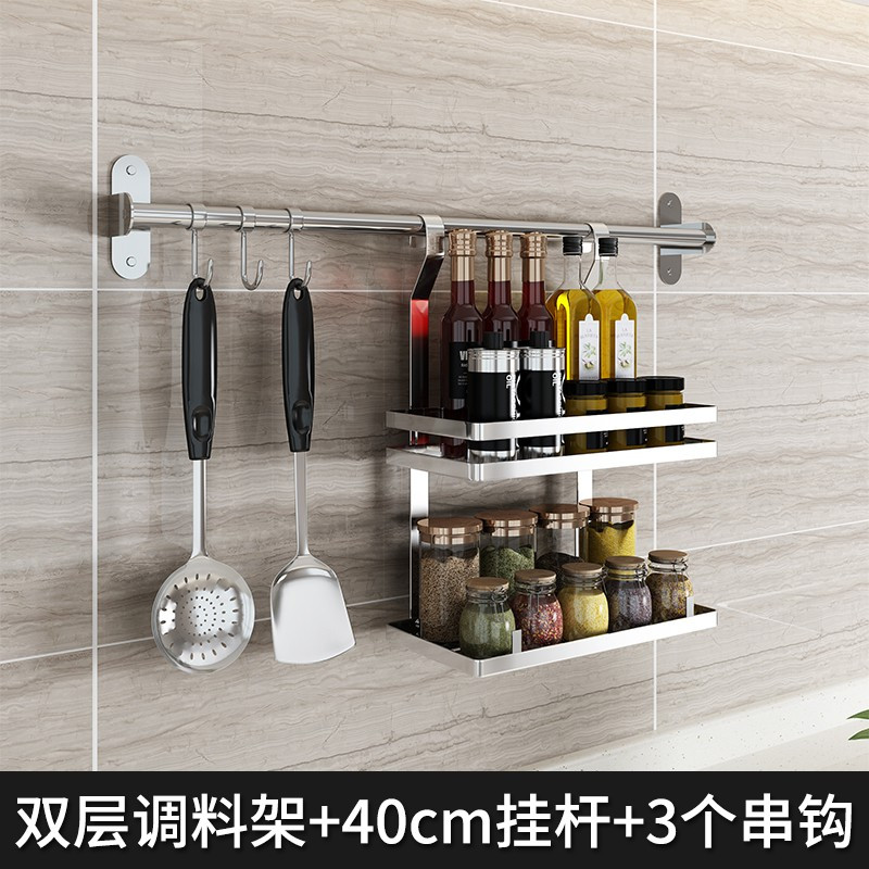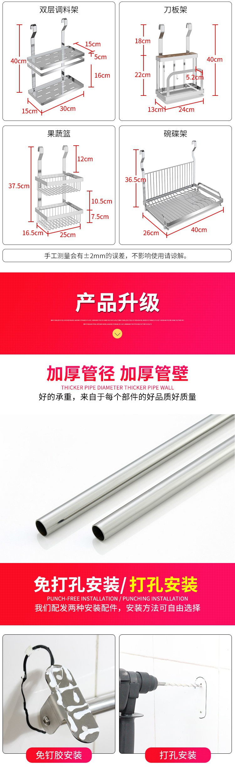 免打孔304不锈钢厨房壁挂式锅盖刀具碗碟筷子调味料用品收纳挂架收纳层架 三维工匠