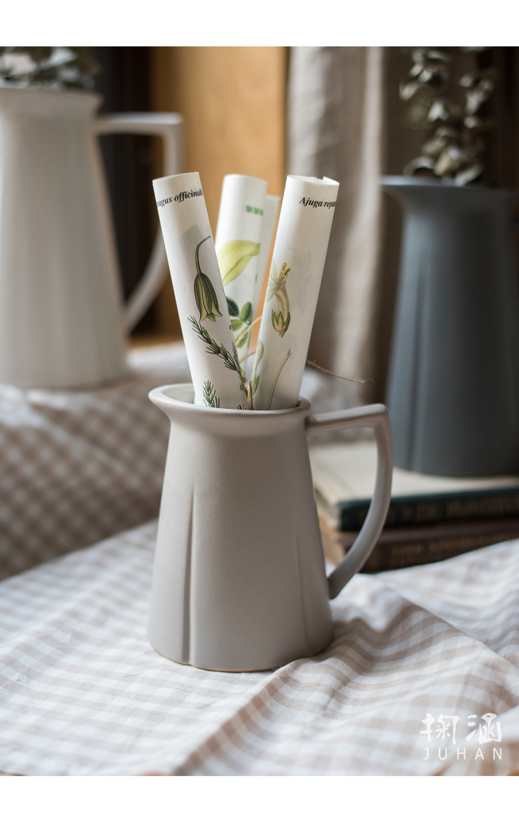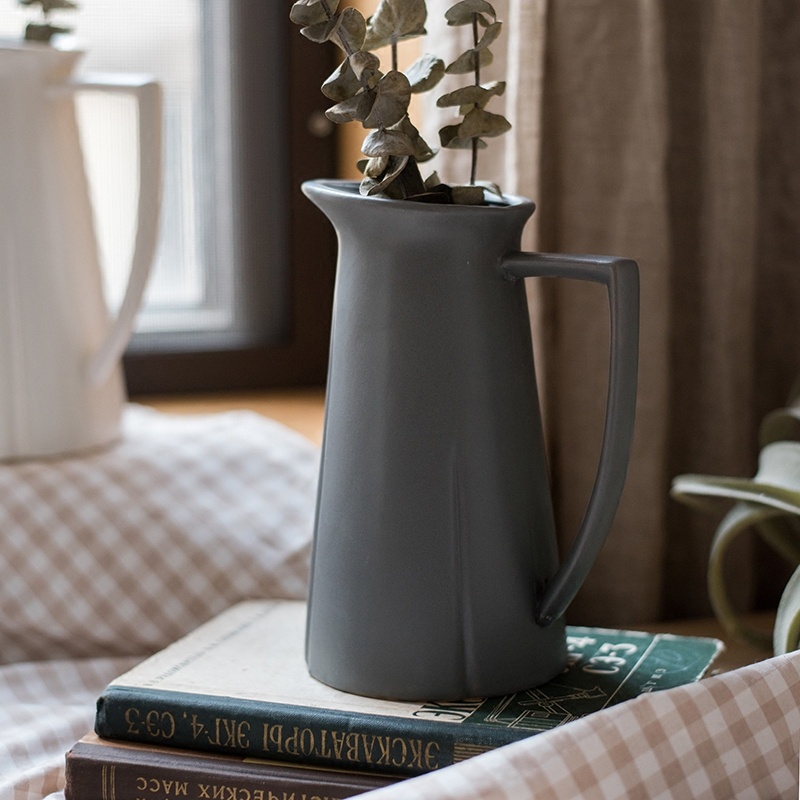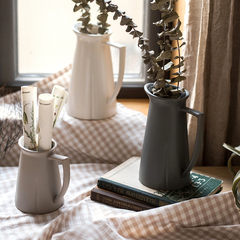 美帮汇陶瓷花壶花瓶花器花插 装饰摆件灰色系北欧简约清新自然