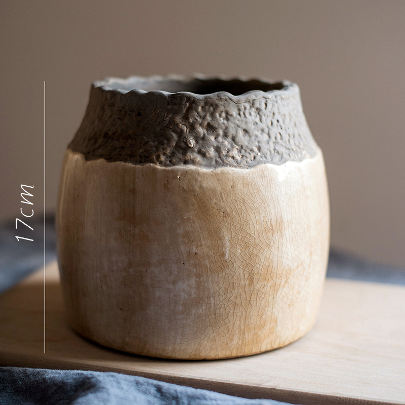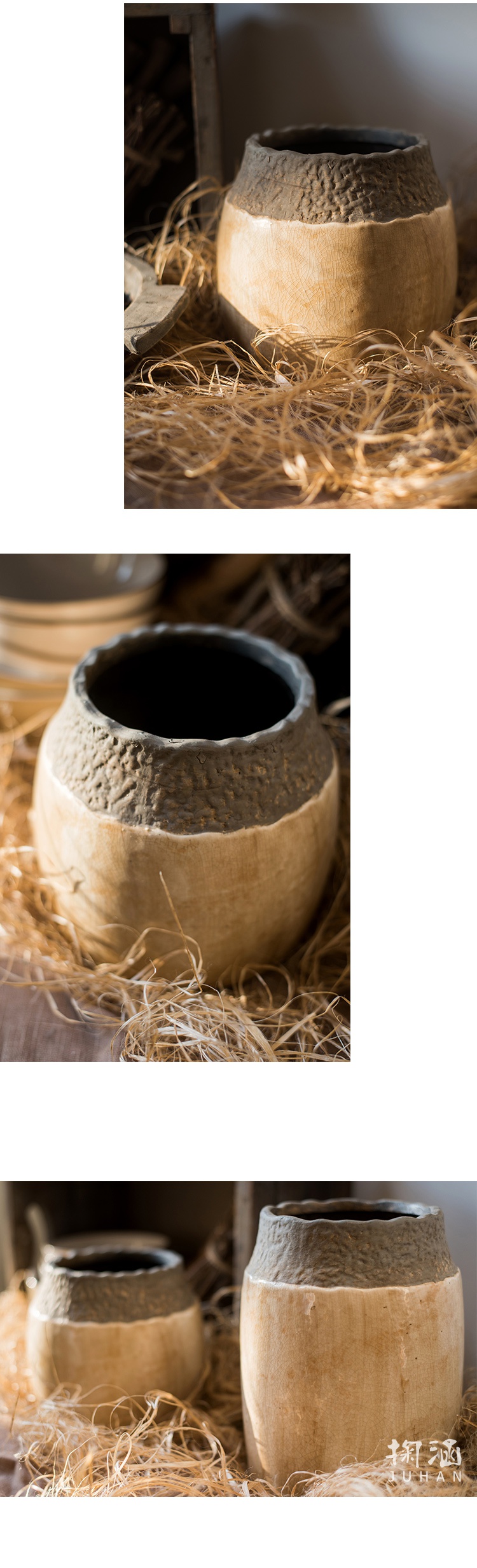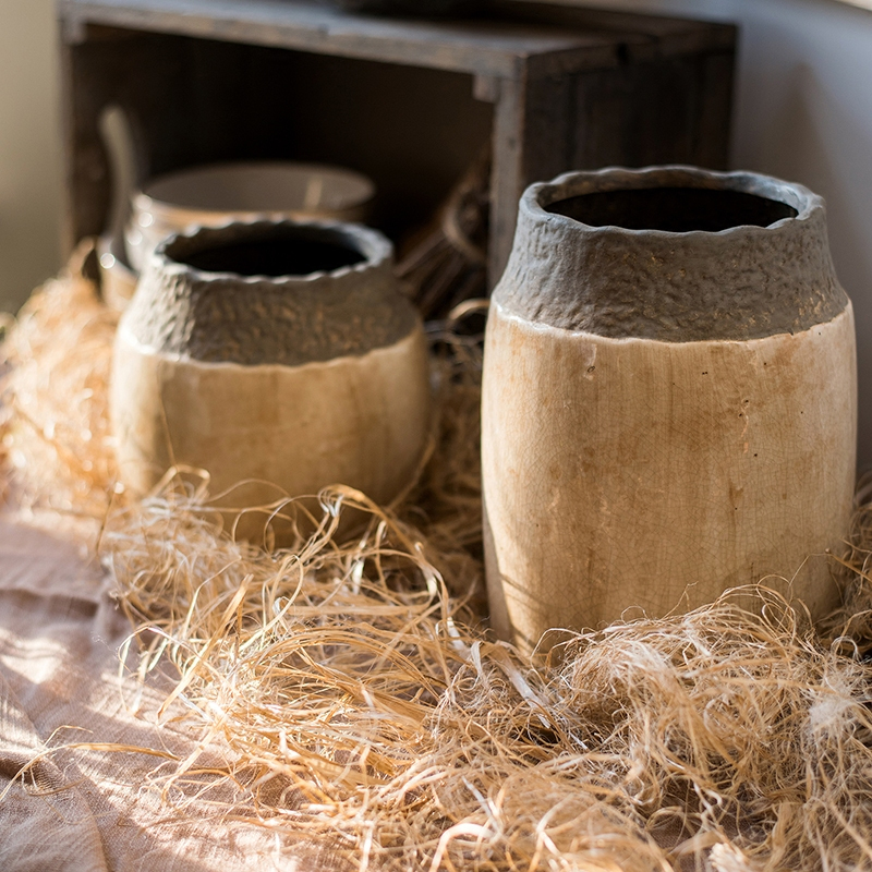 美帮汇手工粗陶罐子 仿古做旧花瓶 花器 花插 艺术风格摆件中式
