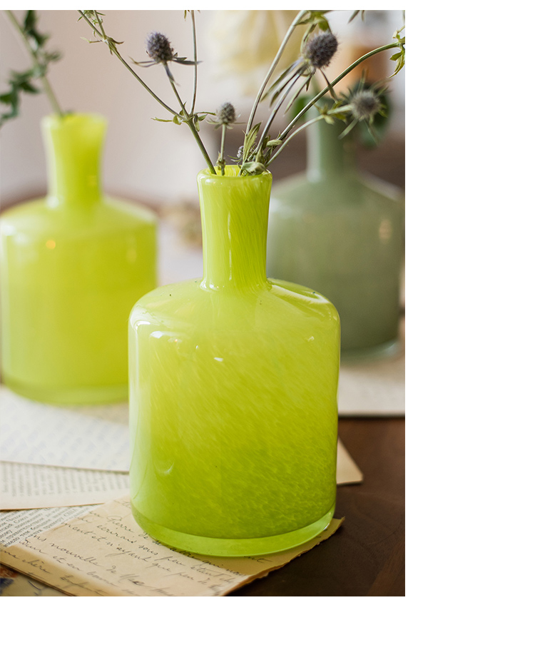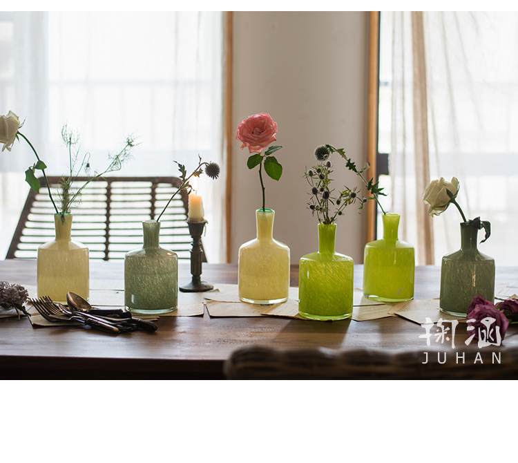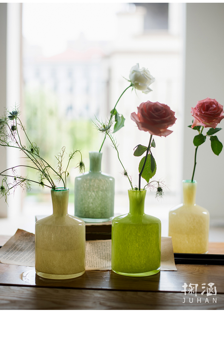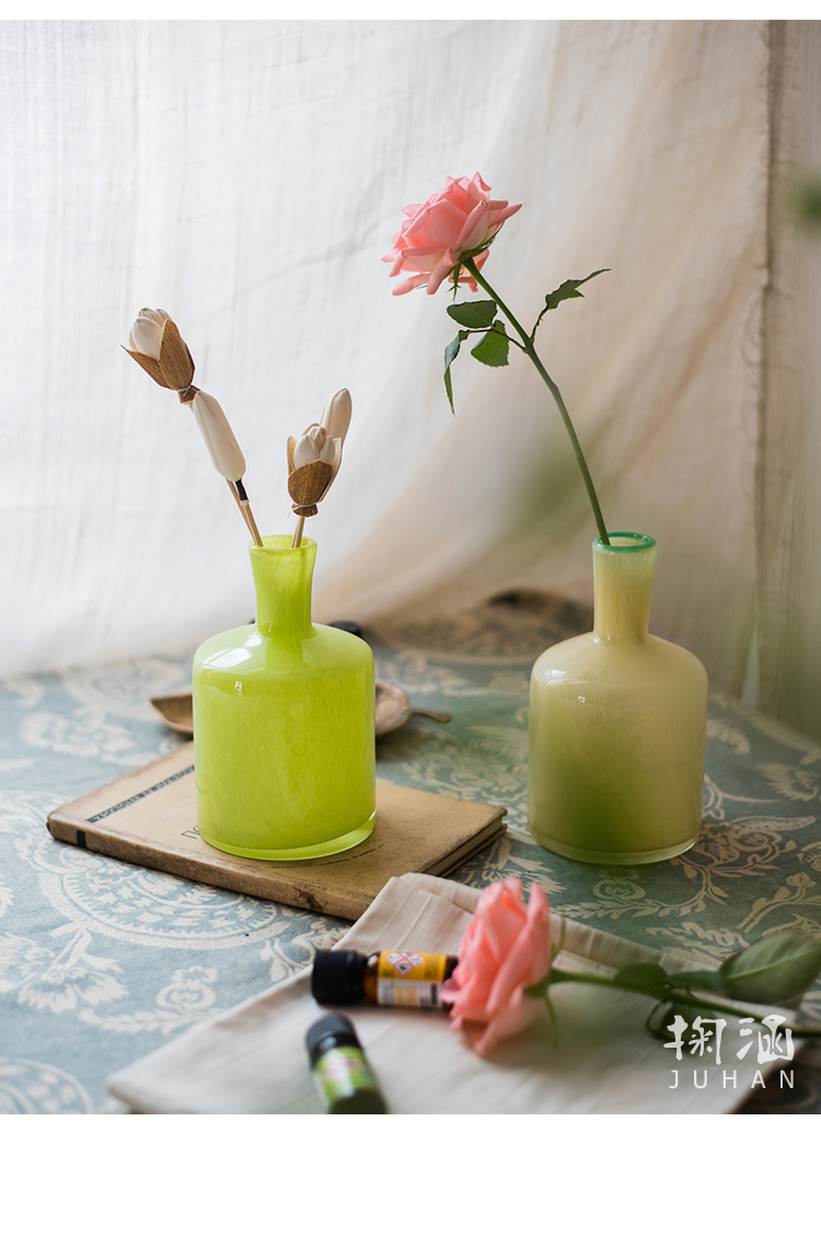 美帮汇手工艺术玻璃花瓶 小口花插香薰瓶瓶装饰摆件北欧 手工艺术玻璃瓶(森雾)