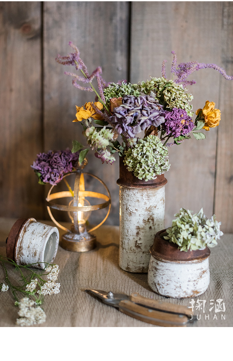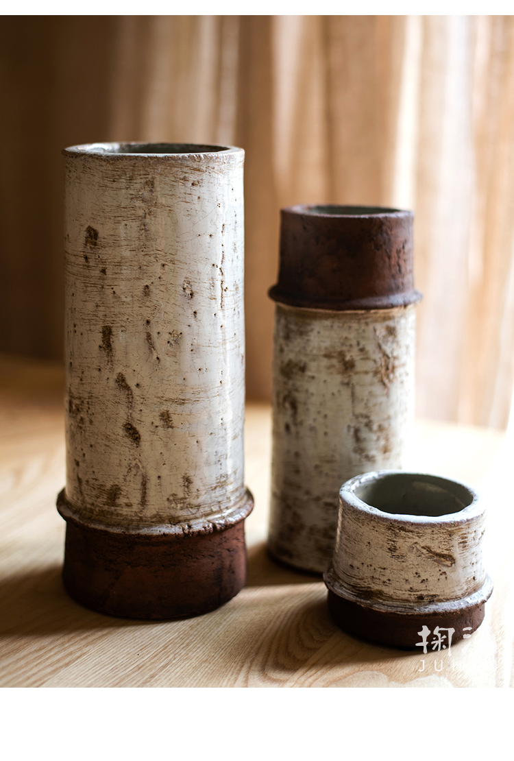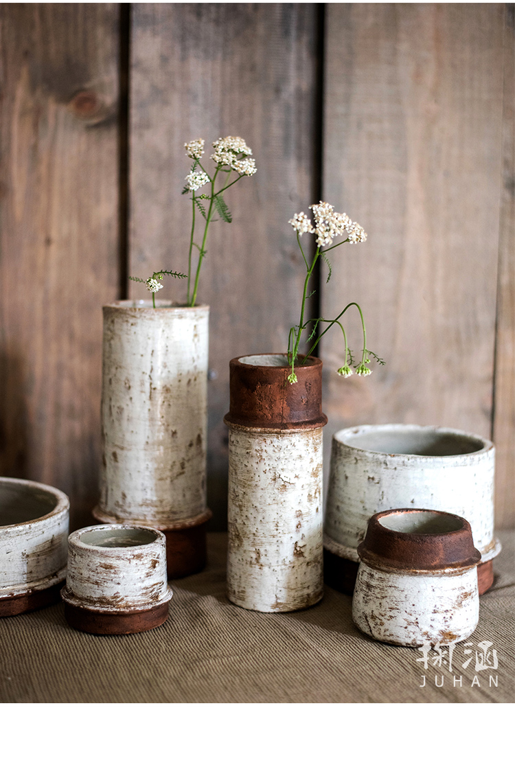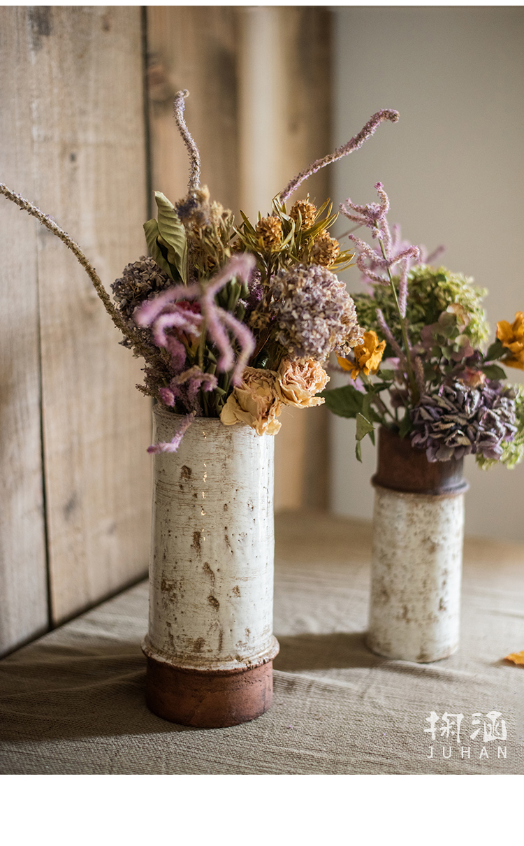 美帮汇复古怀旧几何陶瓷花瓶花器花盆花插装饰摆件创意组合艺术 复古陶瓶(E)底部有孔