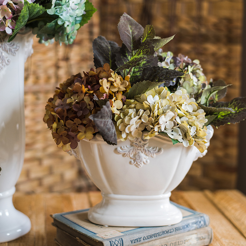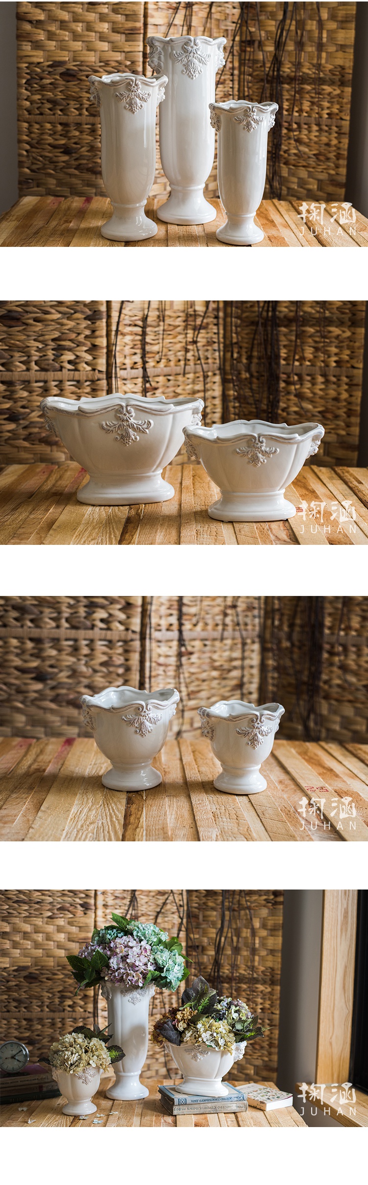 美帮汇法式经典柱盆花器花瓶花盆陶瓷釉下彩装饰摆件复古白瓷 柱瓶(小)