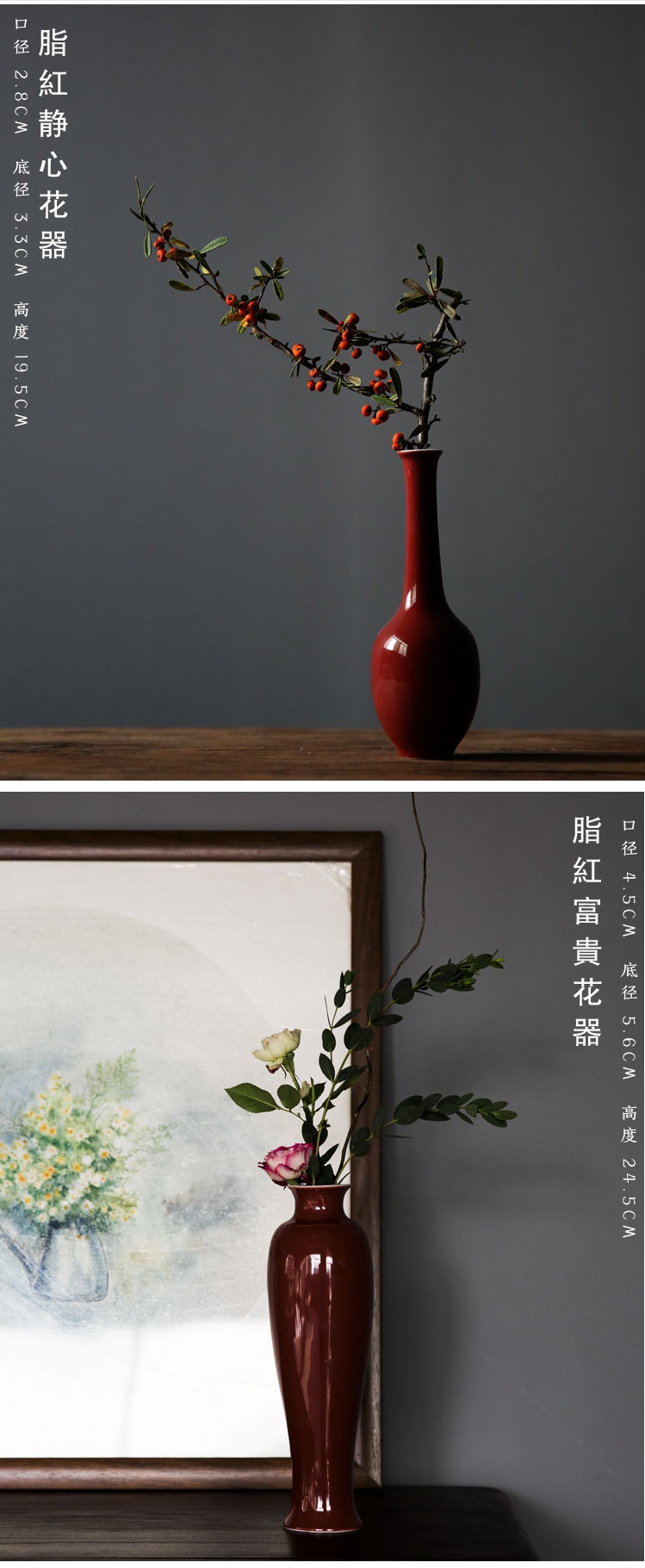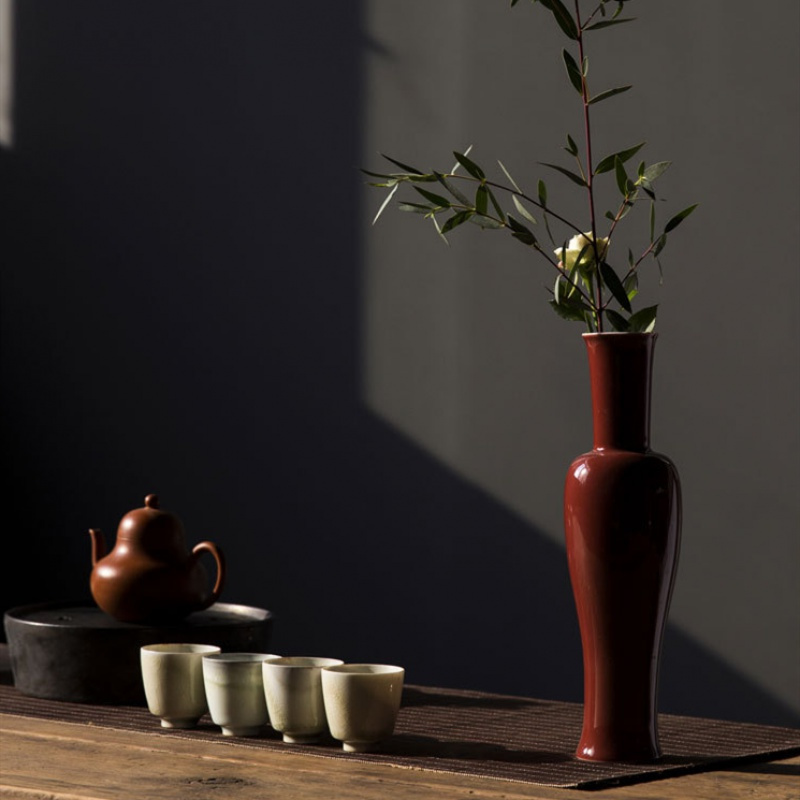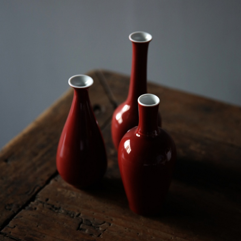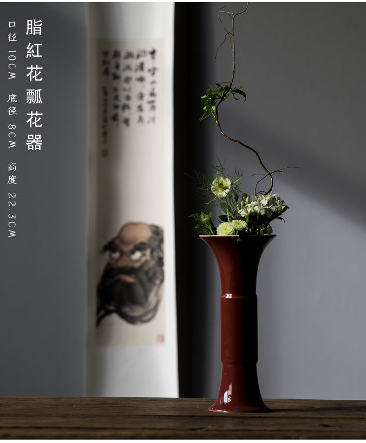 美帮汇原矿脂红陶瓷花瓶摆件色花樽插花干花禅意小花瓶茶席茶道花器